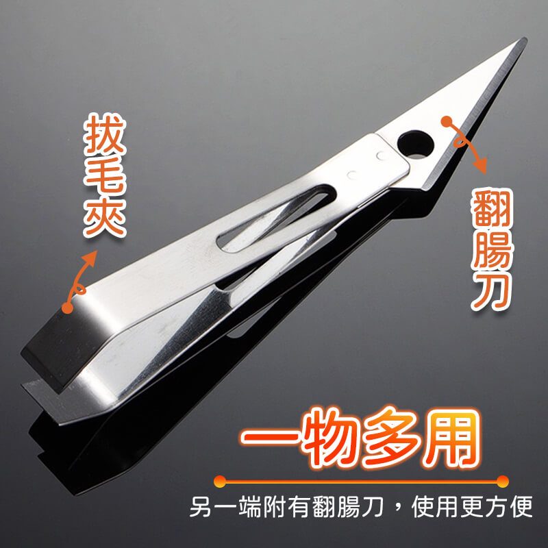 它不僅能精確夾住各種大小的動物毛髮,另一面還設計了翻腸刀,