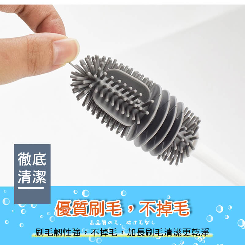 這款清潔杯刷是矽膠材質製成,不僅彈性十足,而且完全不會掉毛。