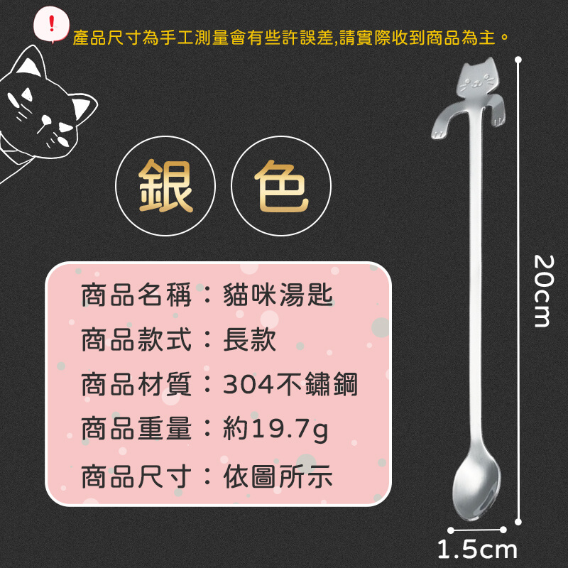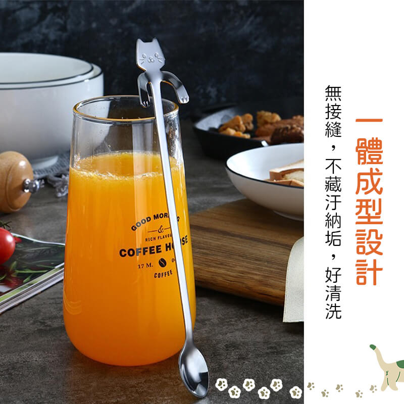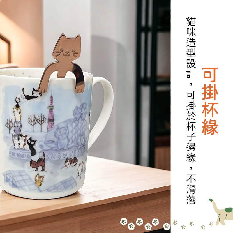 另外貓咪手臂造型設計,可以懸掛杯緣,避免湯匙滑落喔。
