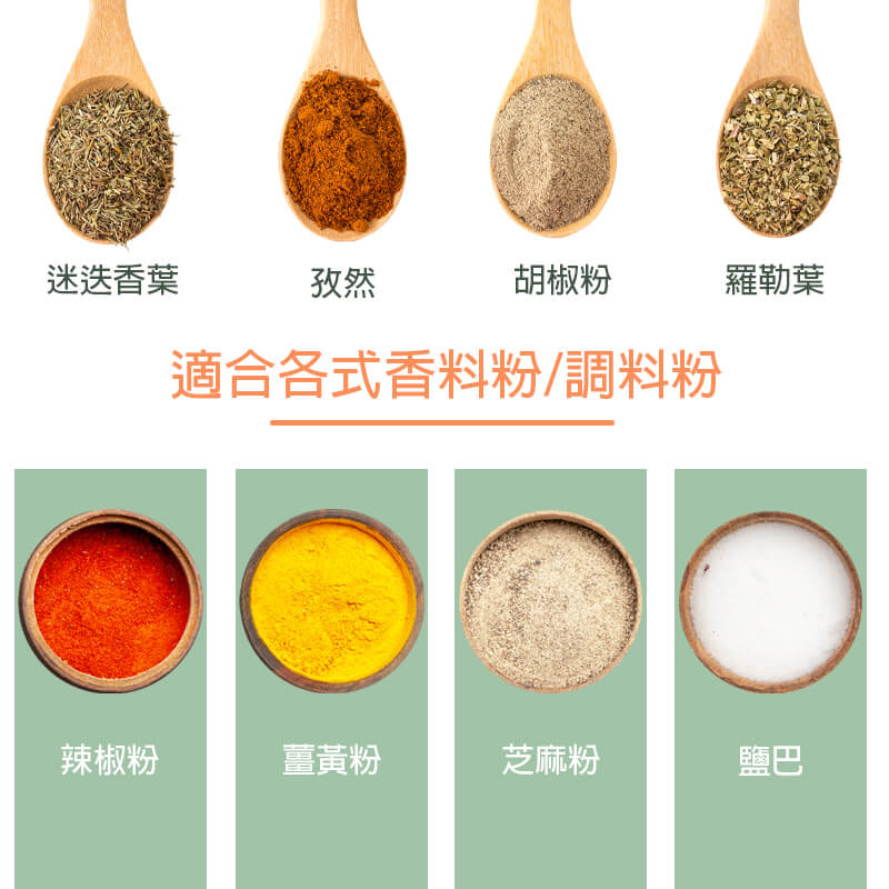 適合各種香料粉末,讓料理更加美味。