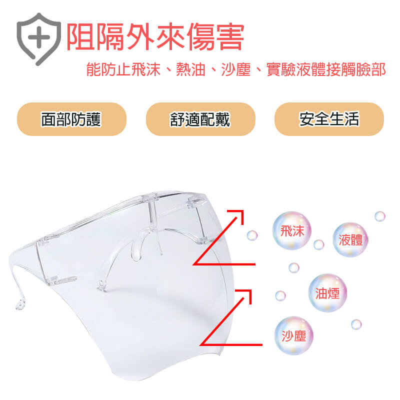 ◆防飛沫◆防風沙◆防撞擊◆防霧清晰◆眼鏡也可以帶◆全臉防護