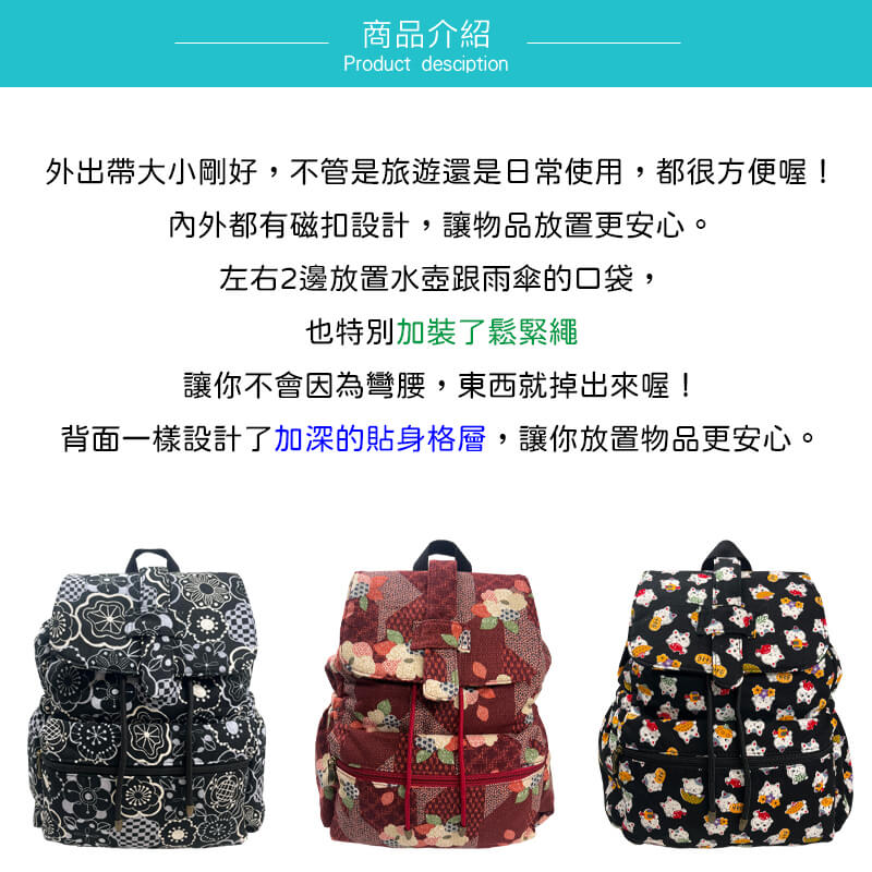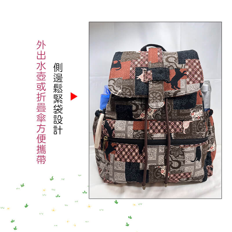 左右2邊放置水壺跟雨傘的口袋,也特別加裝了鬆緊繩