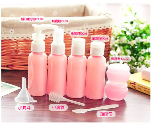 化妝水、精華露、消毒水、乳液、身體乳、面霜