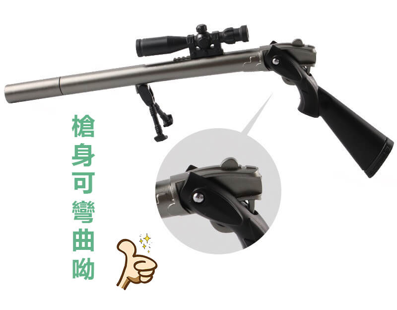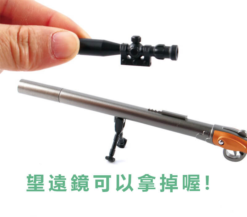 狙擊鏡可以拆下方便書寫,槍身可以自行調整彎曲角度