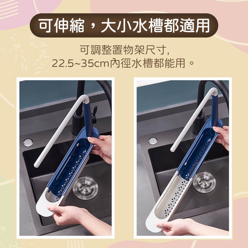 🌞靈活伸縮:這款瀝水架採用可伸縮設計,22.5~35cm範圍內都能使用。