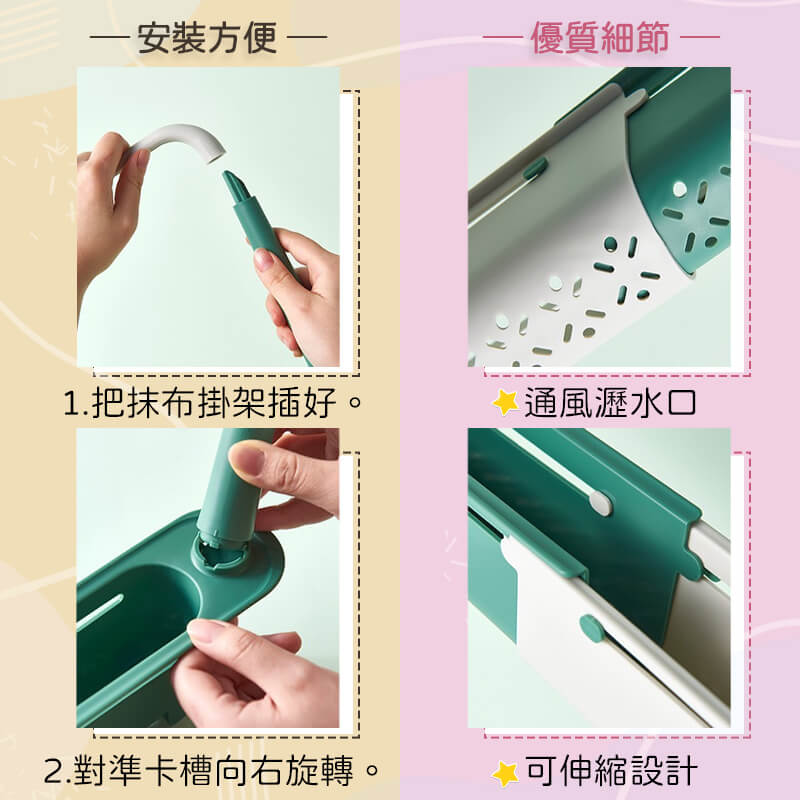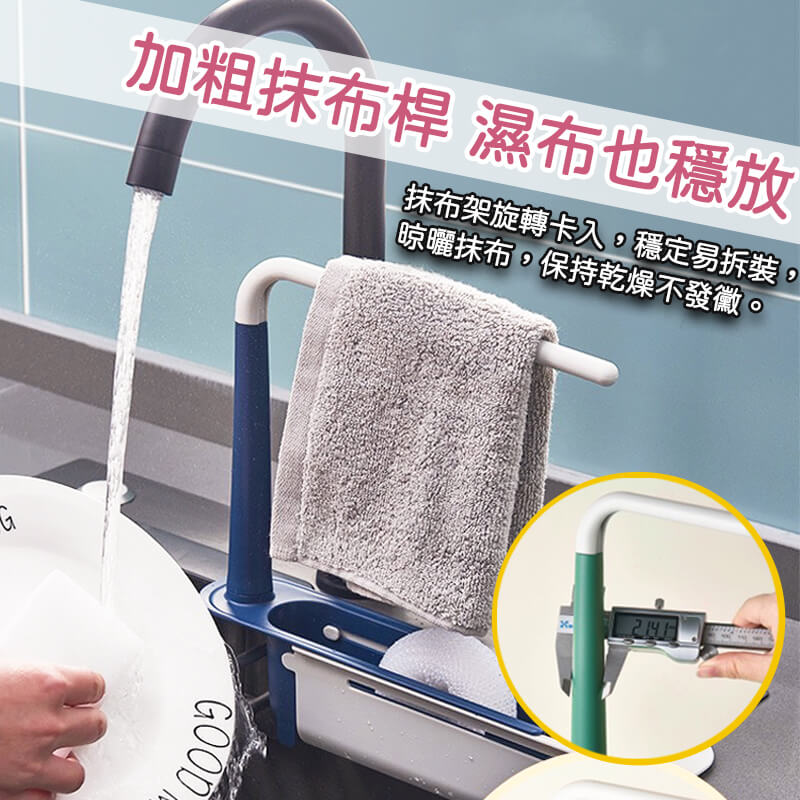🌞加粗抹布桿:抹布架旋轉卡入,濕抹布也能穩穩放置。