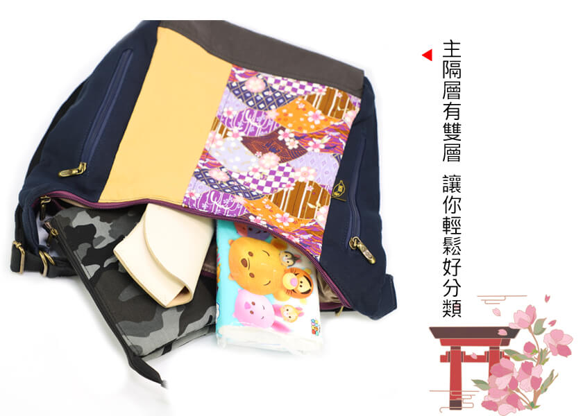 左右兩側可以放水壺跟雨傘,主隔層有雙層,