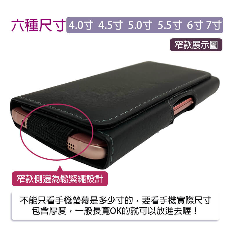 ⚠不能只看手機螢幕是多少吋的,要看手機實際尺寸,側邊是鬆緊帶的,一般長寬OK的就可以放進去喔!