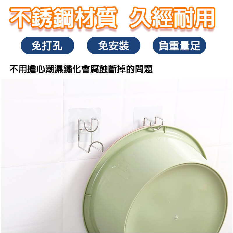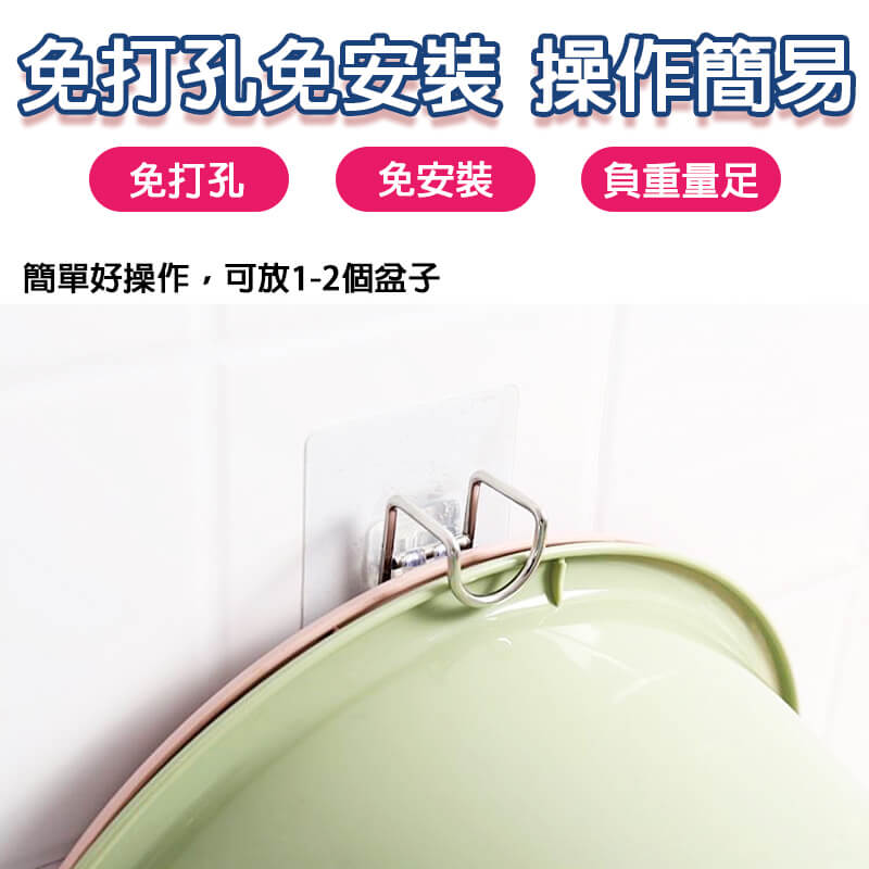 ◆免打孔◆無痕掛勾◆可放置多個臉盆◆適合多個場景◆防潮防鏽◆不銹鋼材質