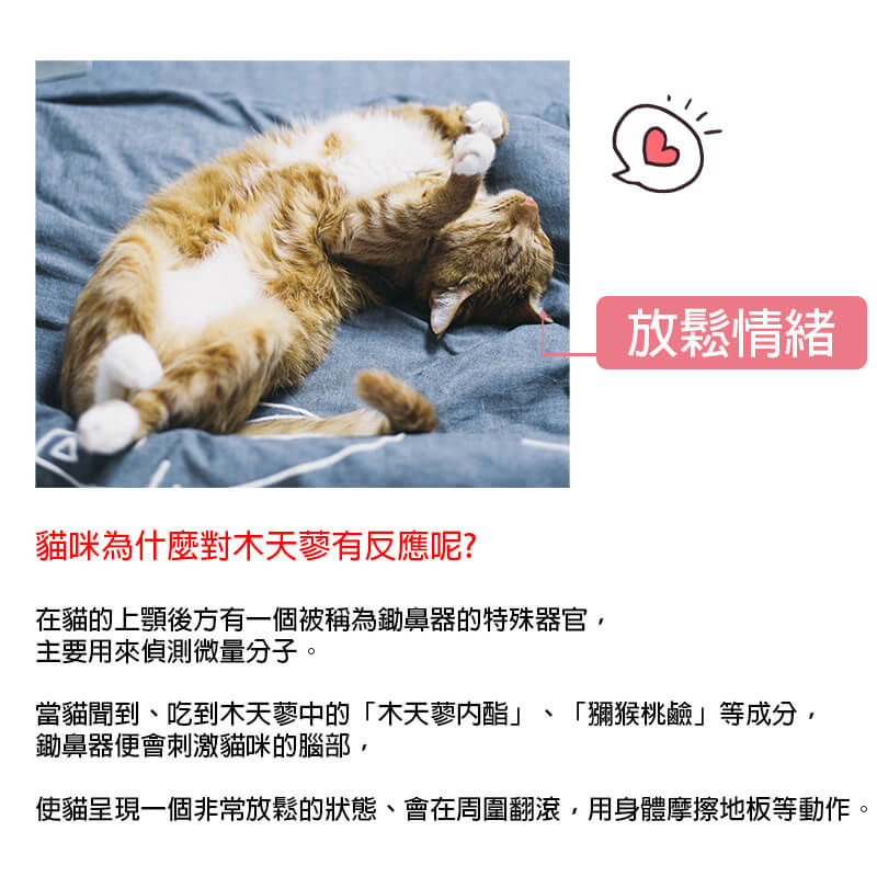 、木天蓼內酯。這3種成分會貓咪聞到有反應,