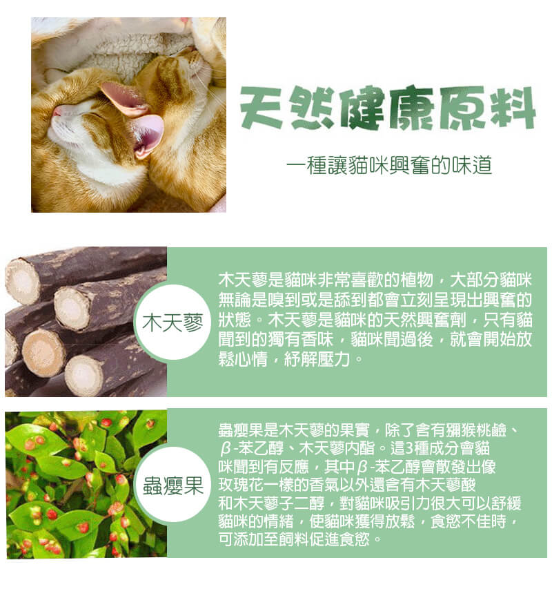 還含有木天蓼酸和木天蓼子二醇,對貓咪吸引力很大