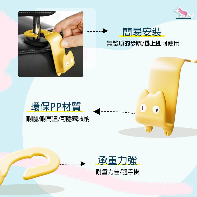 ✨萌萌貓 車內椅背掛勾✨ 可愛小巧造型,加厚材質,讓您擺脫車內凌亂