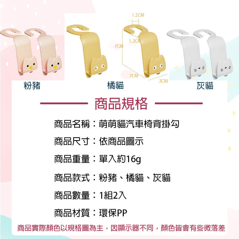 本品內含:萌萌貓 車內椅背掛勾*2