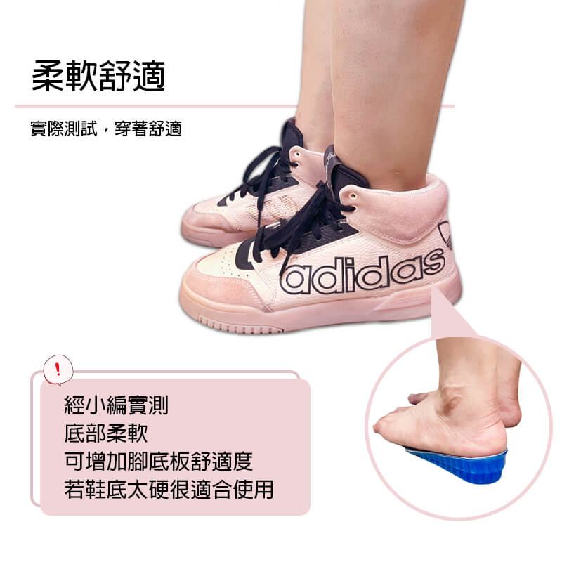 ⚠️高度可調整,加上鞋子本身的高度,墊上鞋墊後,可增加高度,而且非常柔軟舒適。