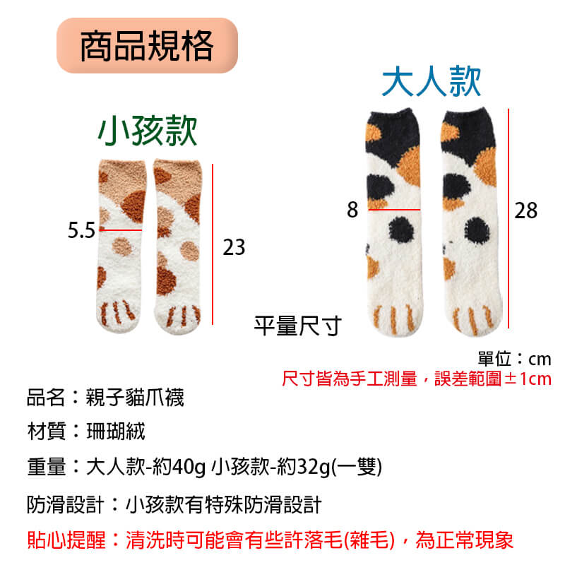珊瑚絨親子貓爪襪給您溫暖的冬天🤗