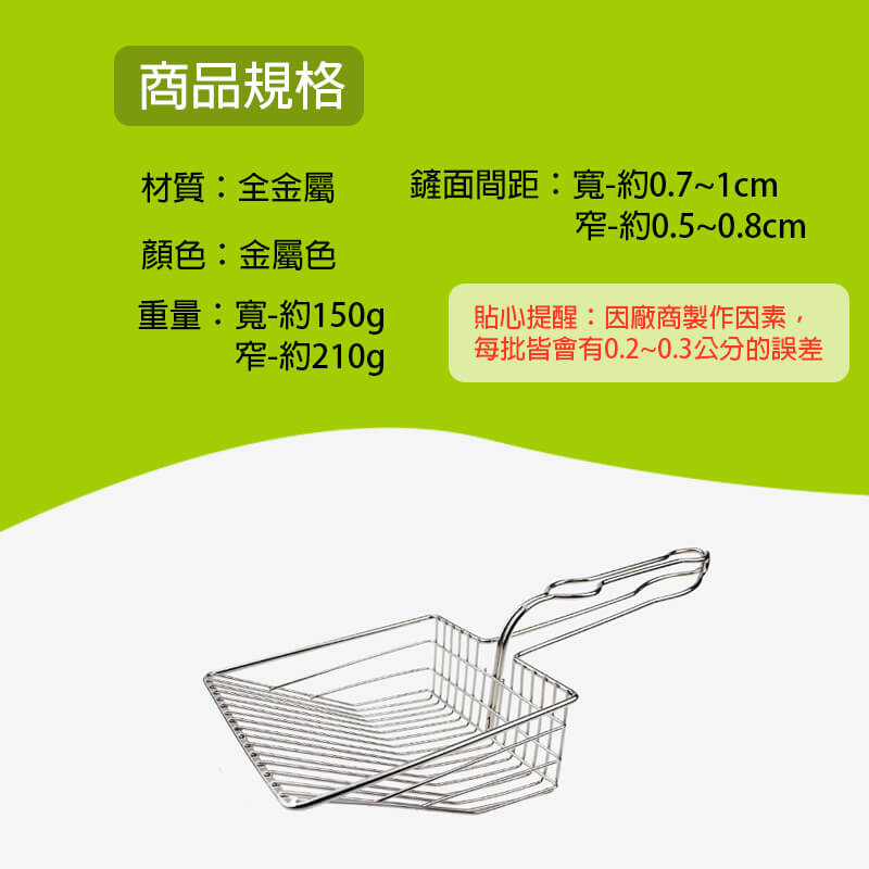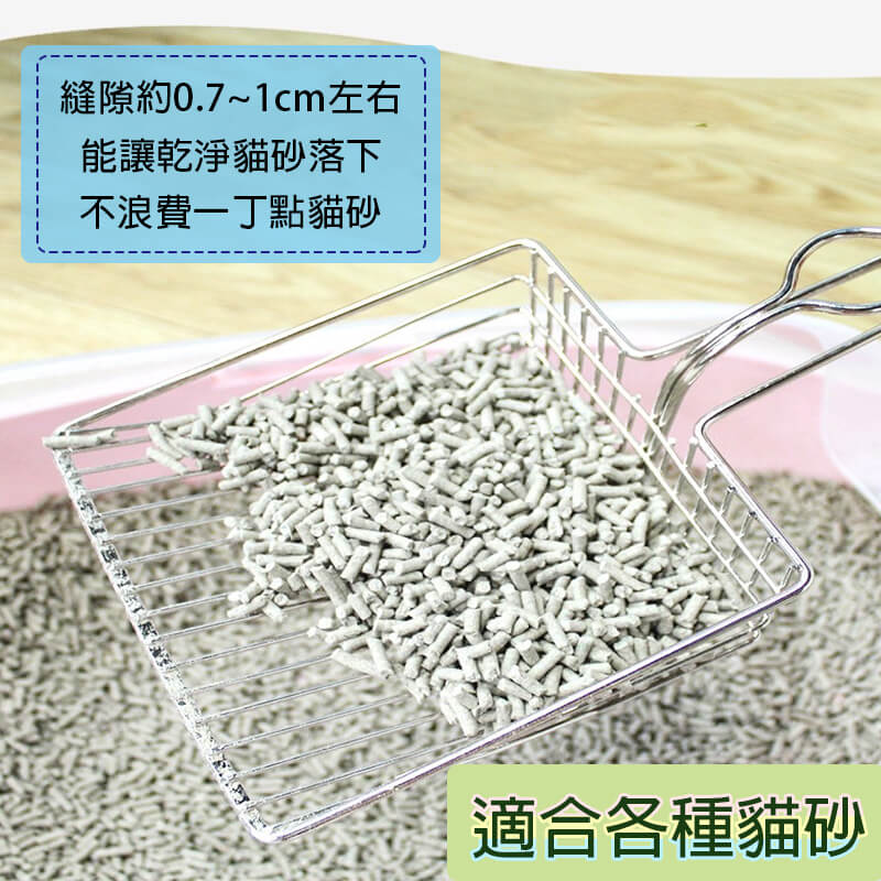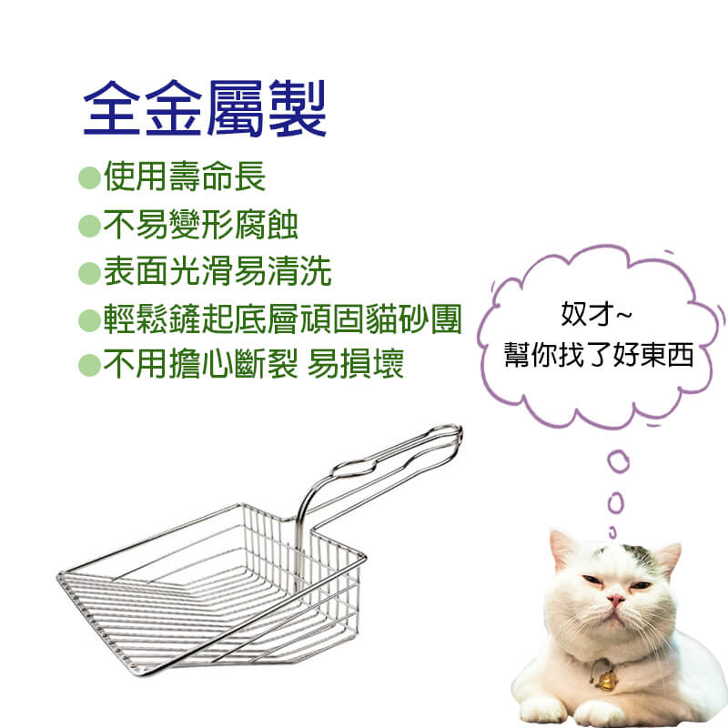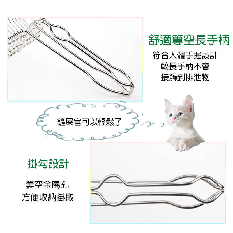 ◆全金屬材質◆加大鏟面◆超長握柄◆適用各種貓砂◆快速濾砂◆輕鬆鏟