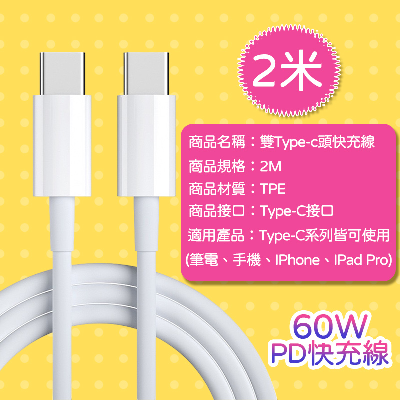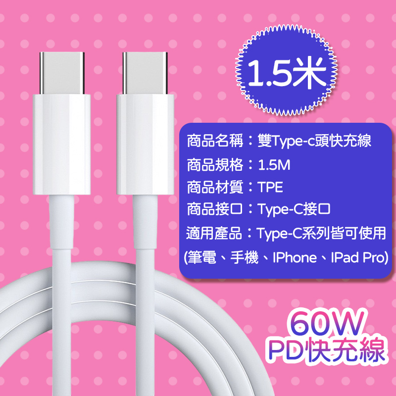 ✨雙Type-C頭 60WPD快充線✨