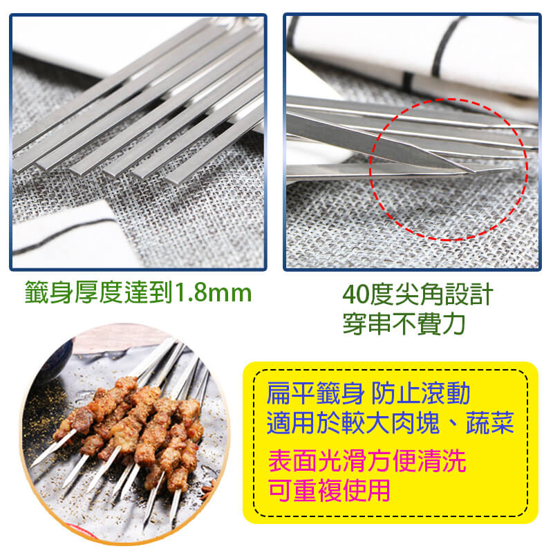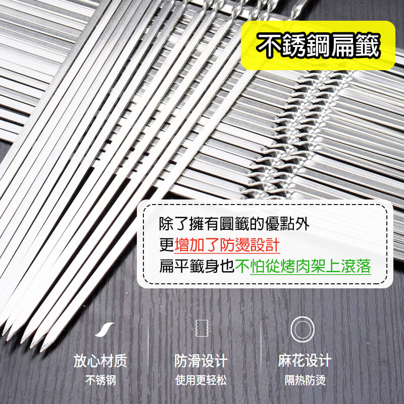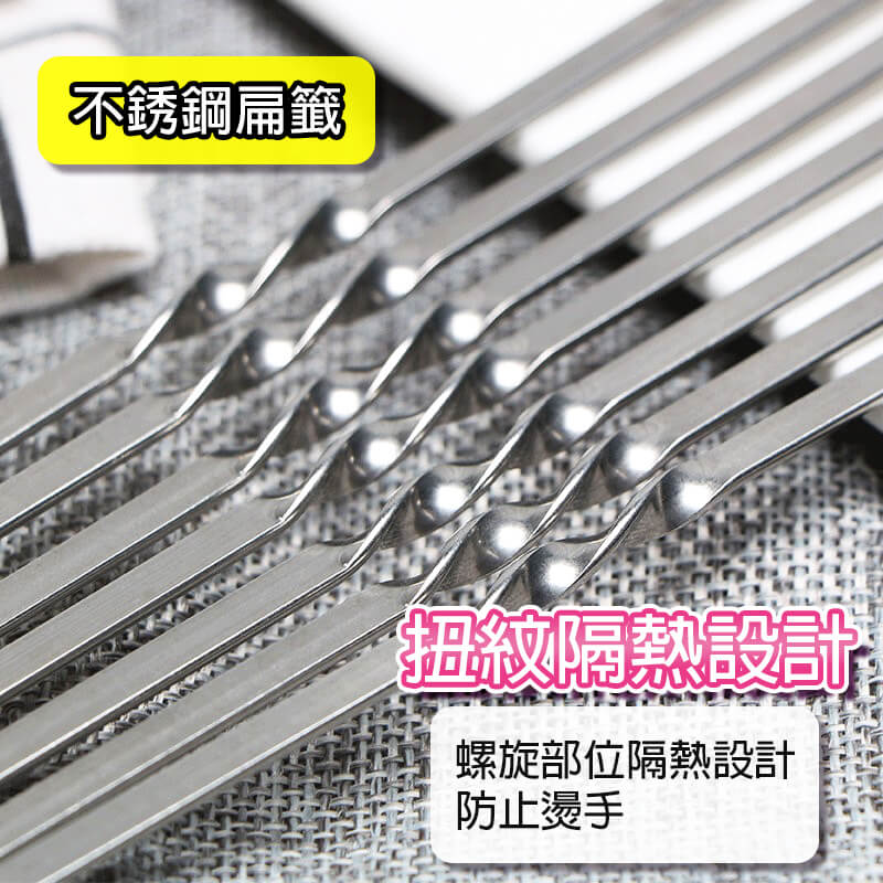 扁型燒烤籤 扭紋設計 隔熱防燙 防止食物滑落到手上