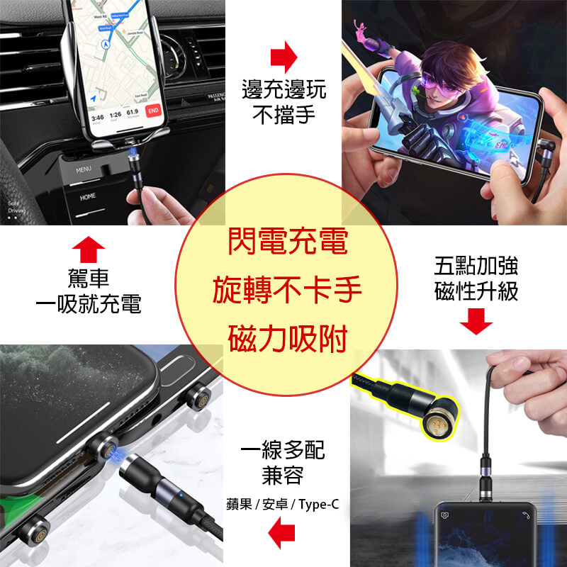 閃電充電 | 旋轉不卡手 | 磁力吸附