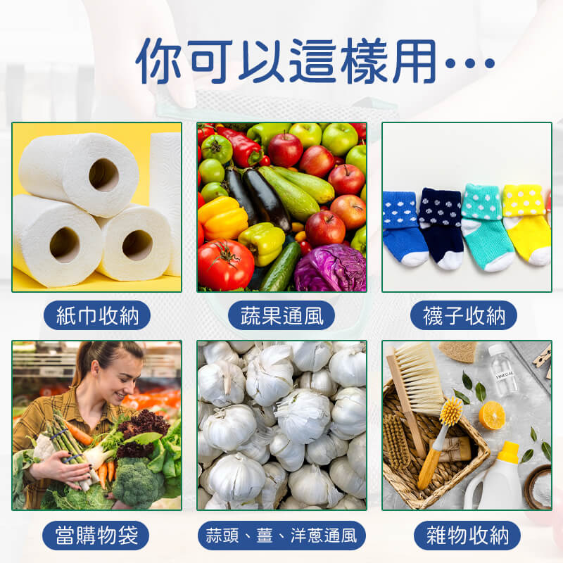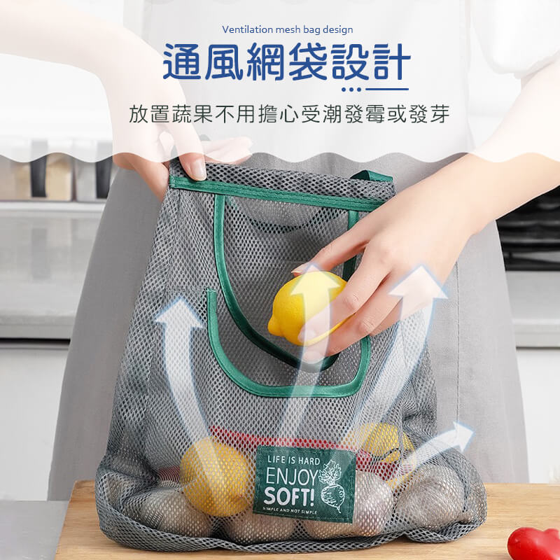 網袋設計讓洋蔥、大蒜、薑通風,避免受潮發霉
