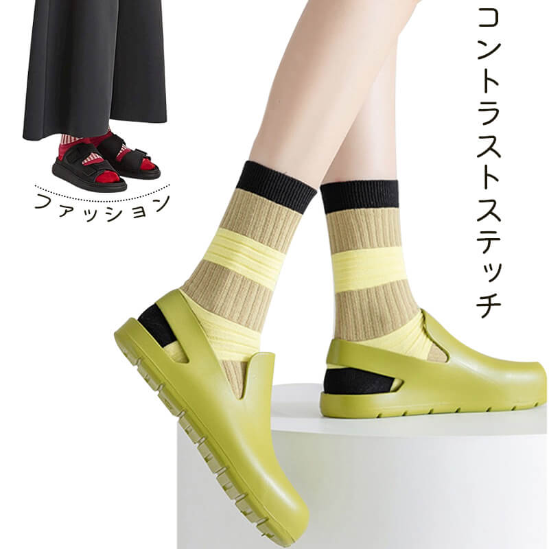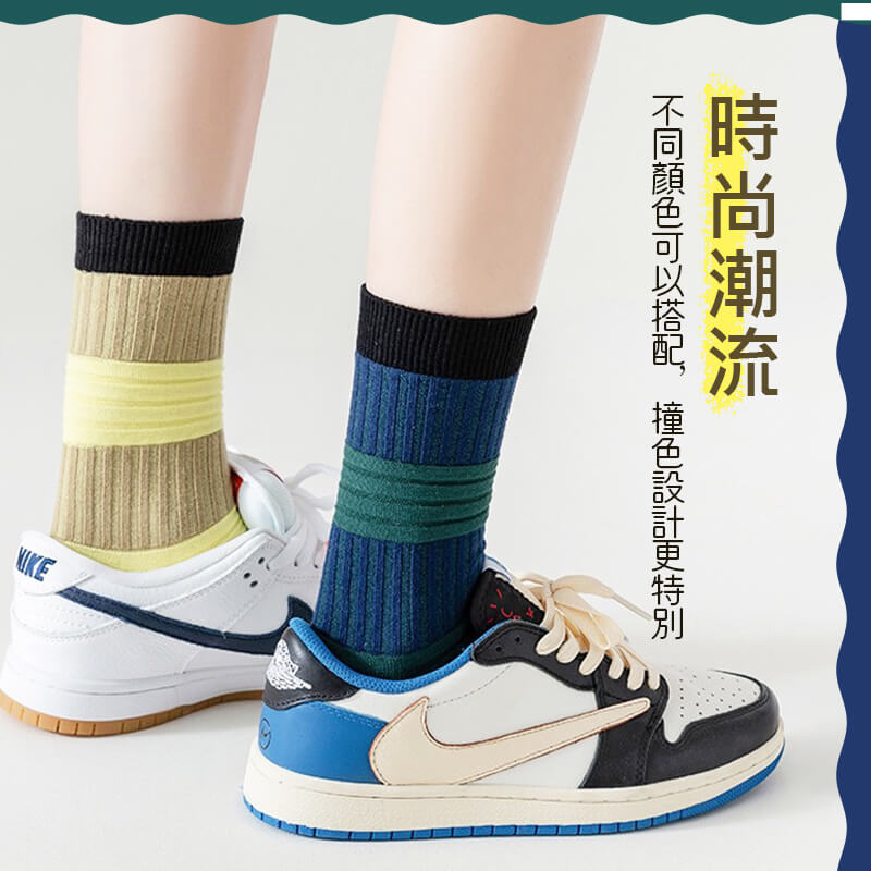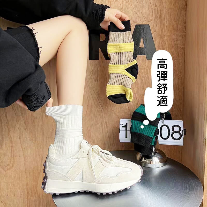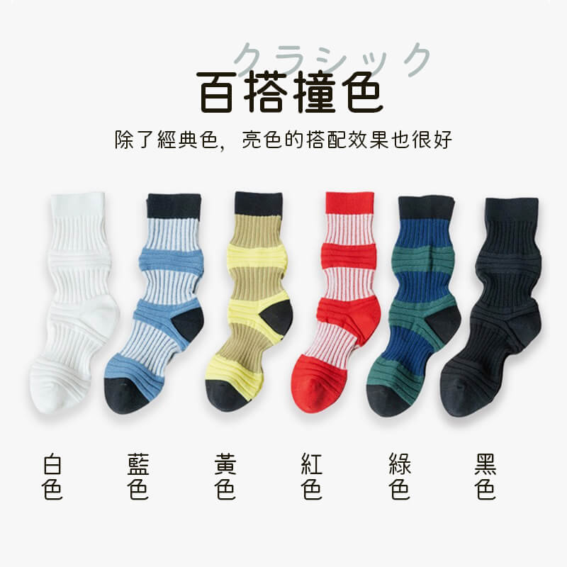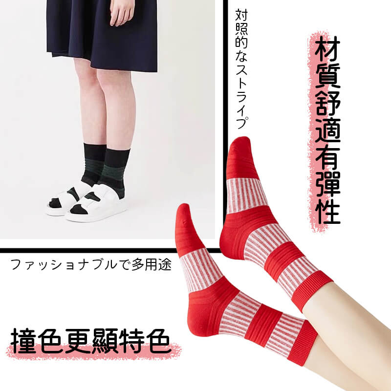◆中筒襪◆小腿襪◆雙針棉襪◆撞色設計◆日系襪