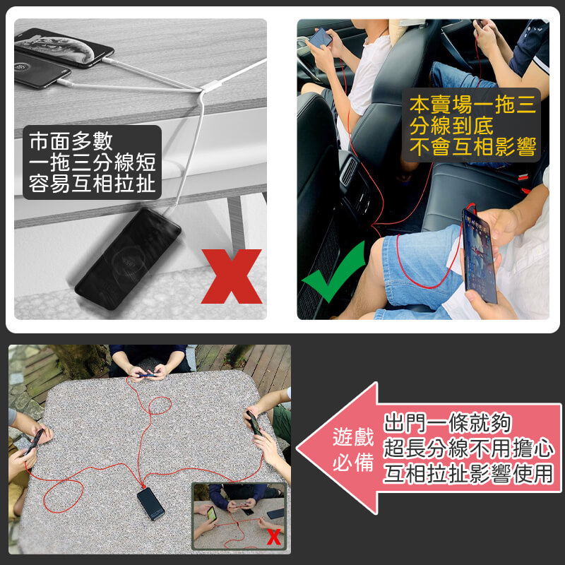 本品內含:一拖三獨立線一條