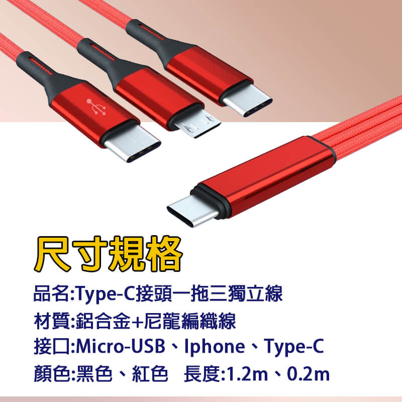 Type-C接頭的一拖三獨立線